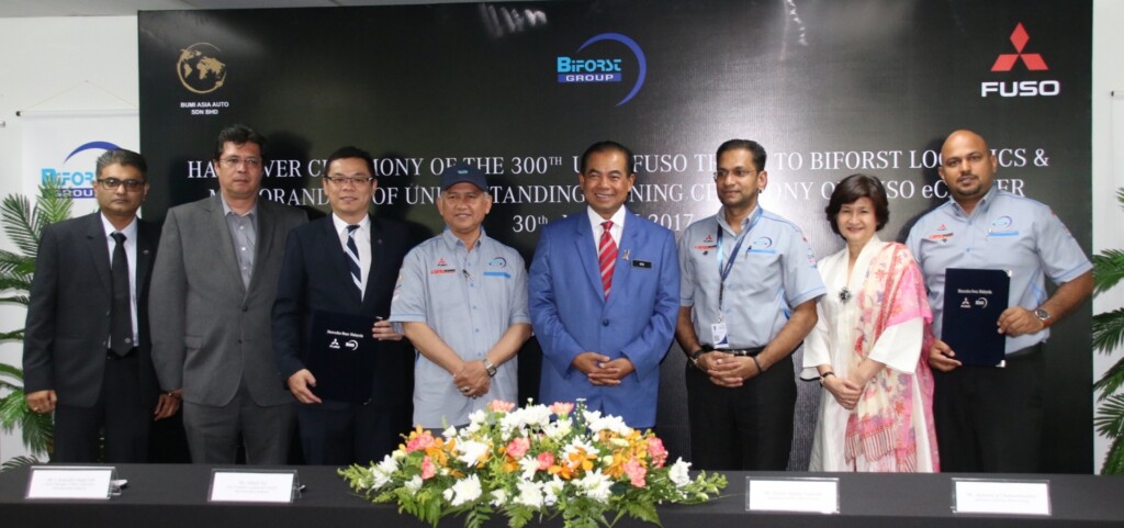 Mercedes-Benz Malaysia Commercial Vehicles (MBM CV) the authorised distributor of FUSO trucks in Malaysia, recently delivers the 300th FUSO truck to Biforst Logistics Sdn Bhd. At the same event, both parties also signed a Memorandum of Understanding (MoU) to formalise Biforst Logistics’ commitment to purchase the first electric-powered truck in Malaysia, the FUSO eCanter upon the vehicle’s availability in Malaysia.