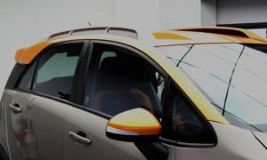 The obvious difference between the normal Iriz and this Iriz Active compact crossover are the higher ground clearance and funkier exteriors, courtesy from the inputs of Proton’s internal designers at Proton Design. The concept unleashes its stealthy theme with the “Earth Grey” colour with matte finishing were applied in most of the car’s body, complemented with metallic Orange Zest on some parts and lines on that car. The concept also adds roof rails and rear tow hooks, telling the audience that this car is suited for those who seeking an active lifestyle.