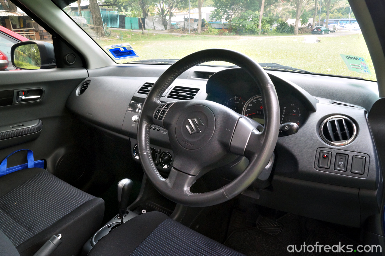 Moving on, we took a look inside, a well known Achilles heel of a lot of Protons. Inside, the Iriz features a very modern interior, with a large 6.2-inch Android-powered touchscreen infotainment taking centre stage. The interior of the Iriz certainly looks more well designed than its siblings, the Preve and Suprima. The faux leather stitching certainly played a part, as that gave the Iriz’s interior a subtle, yet premium impression. Elsewhere, the Iriz has leather seats, three USB ports and a leather-wrapped multifunction steering wheel. The Swift has certainly aged inside, sporting a rather drab interior with not much toys inside. Despite its drab interior, the Swift has an ace up its sleeve.